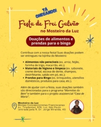 Doações e Festa de Frei Galvão. Tríduo, bingo , barracas