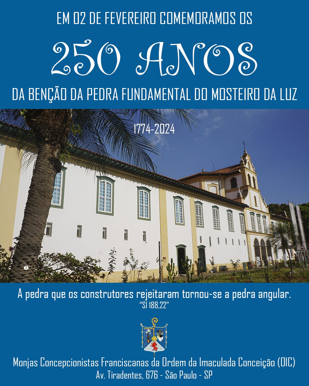 250 anos do Mosteiro da Luz EM 02 DE FEVEREIRO COMEMORAMOS OS 250 ANOS DA BENÇÃO DA PEDRA FUNDAMENTAL DO MOSTEIRO ...