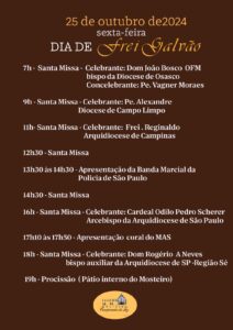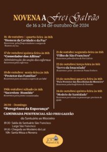 Festa de Frei Galvão 2024 Mosteiro da Luz2024-11-09T16:39:26-03:0011 de outubro de 2024| Festa de Frei Galvão 2024 click para aumentar Compartilhe: FacebookWhatsAppEmail Related Posts Doações e Festa de Frei Galvão Gallery Doações e Festa de Frei Galvão 25 de setembro de 2025 | 0 Comments Santa Missa junto ao Túmulo de Frei Galvão – 20/09/2025 – Celebrante Frades Franciscanos Gallery Santa Missa junto ao Túmulo de Frei Galvão – 20/09/2025 – Celebrante Frades Franciscanos 23 de setembro de 2025 Santa Missa junto ao Túmulo de Frei Galvão – 13/09/2025 – Celebrante Frades Franciscanos Gallery Santa Missa junto ao Túmulo de Frei Galvão – 13/09/2025 – Celebrante Frades Franciscanos 23 de setembro de 2025 Santa Missa junto ao Túmulo de Frei Galvão 06/09/2025 – Celebrante Pe.Aberio Christe Gallery Santa Missa junto ao Túmulo de Frei Galvão 06/09/2025 – Celebrante Pe.Aberio Christe 6 de setembro de 2025 Santa Missa junto ao Túmulo de Frei Galvão – 30/08/2025 – Celebrantes Frades Franciscanos Gallery Santa Missa junto ao Túmulo de Frei Galvão – 30/08/2025 – Celebrantes Frades Franciscanos 30 de agosto de 2025 Label Seu Nome (obrigatório)* Seu Email (não obrigatório) Δ Label Seu Nome (obrigatório)* Seu Email (não obrigatório) Δ 0 Graças Alcançadas: Feedbacks embutidos Ver todos os comentários