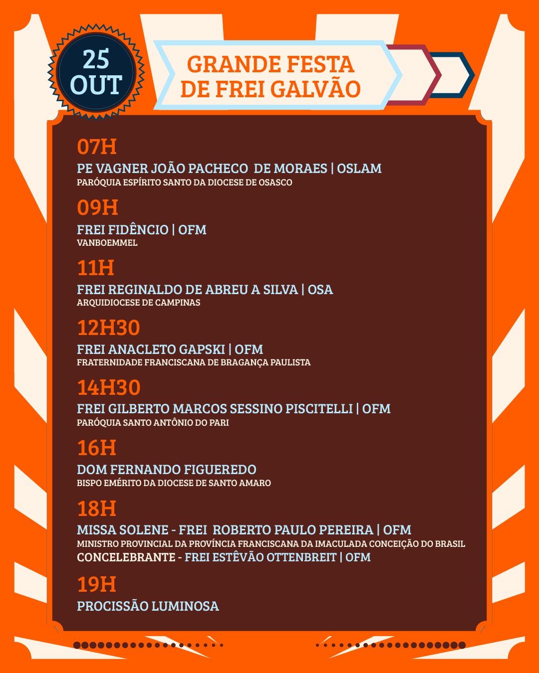 Festa de Frei Galvão 2025 Mosteiro da Luz2025-10-19T17:59:48-03:0019 de outubro de 2025| Compartilhe: FacebookWhatsAppEmail Related Posts Festa de Frei Galvão 2025 Gallery Festa de Frei Galvão 2025 19 de outubro de 2025 | 0 Comments Santa Missa junto ao Túmulo de Frei Galvão – 18/10/2025 – Celebrante Frades Menores Gallery Santa Missa junto ao Túmulo de Frei Galvão – 18/10/2025 – Celebrante Frades Menores 19 de outubro de 2025 Santa Missa junto ao Túmulo de Frei Galvão – 11/10/2025 – Celebrante Frades Menores Gallery Santa Missa junto ao Túmulo de Frei Galvão – 11/10/2025 – Celebrante Frades Menores 19 de outubro de 2025 Santa Missa junto ao Túmulo de Frei Galvão – 04/10/2025 – Celebrante Pe. Abério Gallery Santa Missa junto ao Túmulo de Frei Galvão – 04/10/2025 – Celebrante Pe. Abério 19 de outubro de 2025 Santa Missa junto ao Túmulo de Frei Galvão – 27/09/2025 – Celebrante Cônego João Mildner Gallery Santa Missa junto ao Túmulo de Frei Galvão – 27/09/2025 – Celebrante Cônego João Mildner 19 de outubro de 2025 Label Seu Nome (obrigatório)* Seu Email (não obrigatório) Δ Label Seu Nome (obrigatório)* Seu Email (não obrigatório) Δ 0 Graças Alcançadas: Feedbacks embutidos Ver todos os comentários