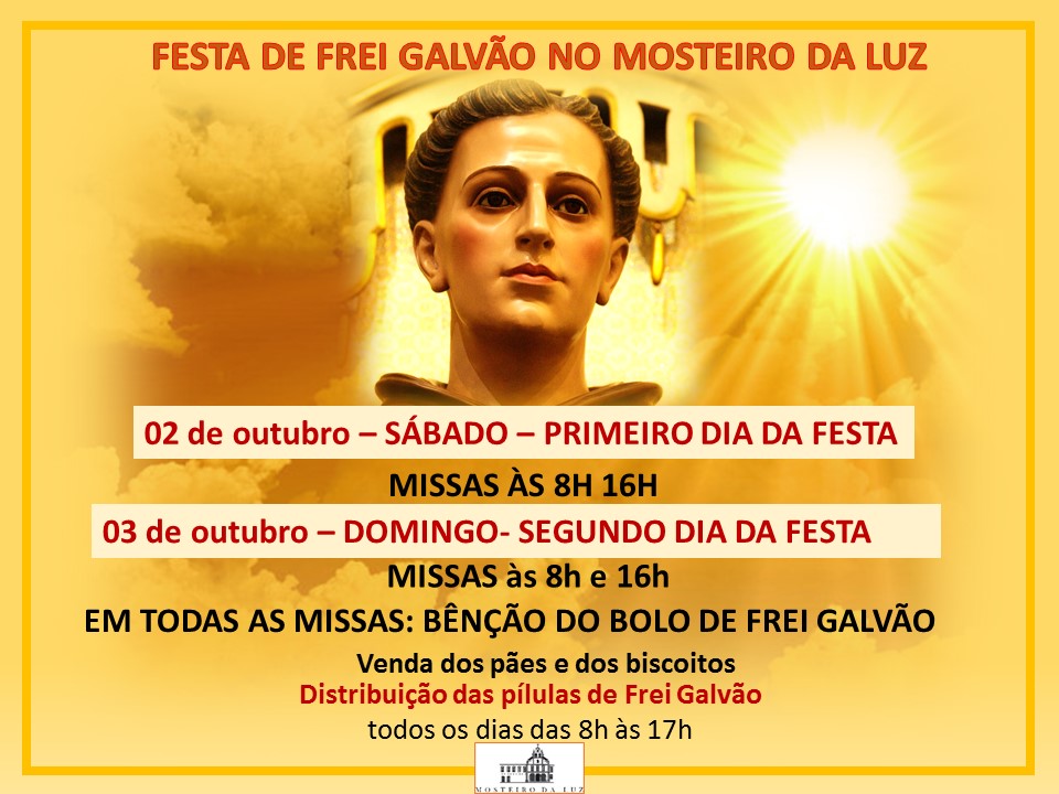 Festa de Frei Galvão Mosteiro da Luz2021-10-01T15:46:46-03:0030 de setembro de 2021| Festa de Frei Galvão Compartilhe: FacebookWhatsAppEmail Related Posts Doações e Festa de Frei Galvão Gallery Doações e Festa de Frei Galvão 25 de setembro de 2025 | 0 Comments Santa Missa junto ao Túmulo de Frei Galvão – 20/09/2025 – Celebrante Frades Franciscanos Gallery Santa Missa junto ao Túmulo de Frei Galvão – 20/09/2025 – Celebrante Frades Franciscanos 23 de setembro de 2025 Santa Missa junto ao Túmulo de Frei Galvão – 13/09/2025 – Celebrante Frades Franciscanos Gallery Santa Missa junto ao Túmulo de Frei Galvão – 13/09/2025 – Celebrante Frades Franciscanos 23 de setembro de 2025 Santa Missa junto ao Túmulo de Frei Galvão 06/09/2025 – Celebrante Pe.Aberio Christe Gallery Santa Missa junto ao Túmulo de Frei Galvão 06/09/2025 – Celebrante Pe.Aberio Christe 6 de setembro de 2025 Santa Missa junto ao Túmulo de Frei Galvão – 30/08/2025 – Celebrantes Frades Franciscanos Gallery Santa Missa junto ao Túmulo de Frei Galvão – 30/08/2025 – Celebrantes Frades Franciscanos 30 de agosto de 2025 Label Seu Nome (obrigatório)* Seu Email (não obrigatório) Δ Label Seu Nome (obrigatório)* Seu Email (não obrigatório) Δ 0 Graças Alcançadas: Feedbacks embutidos Ver todos os comentários