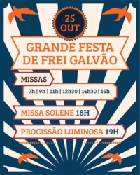 Festa de Frei Galvão 2025 Venham participar com sua família ao longo do dia várias missas