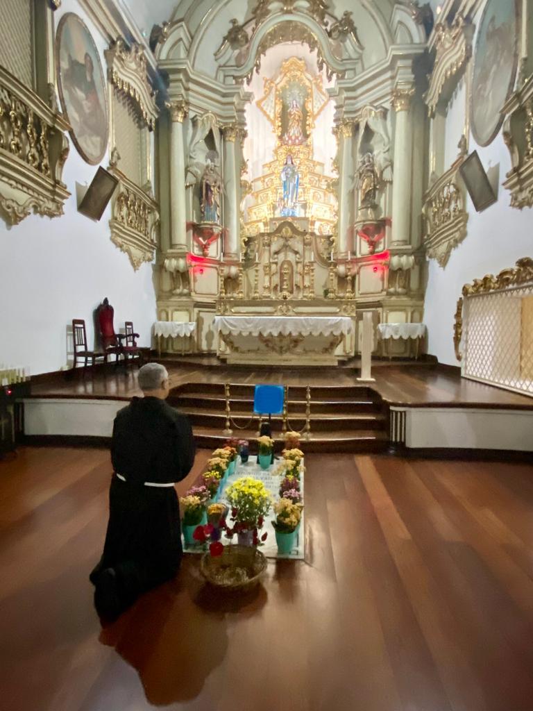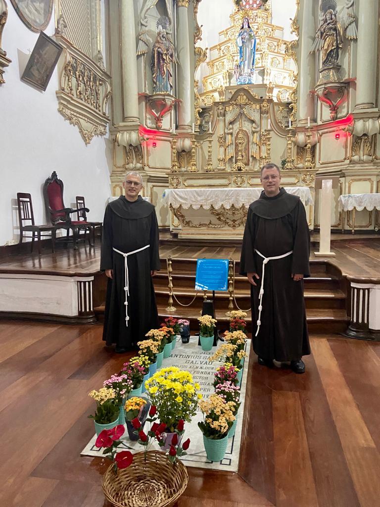 No dia 7 de fevereiro tivemos a alegria e satisfação de receber em nosso Mosteiro, a visita de Frei Massimo Fusarelli, Ministro Geral da Ordem dos Frades Menores. Ele desejava nos conhecer e visitar o túmulo do Primeiro Santo Brasileiro Frei Galvão. Ele veio acompanhado pelo Frei César Külkamp definidor Geral para a América Latina. Conheceu as dependências do Mosteiro e rezou junto a urna e o túmulo do Frei Galvão. Bendito seja Deus por esta abençoada visita.